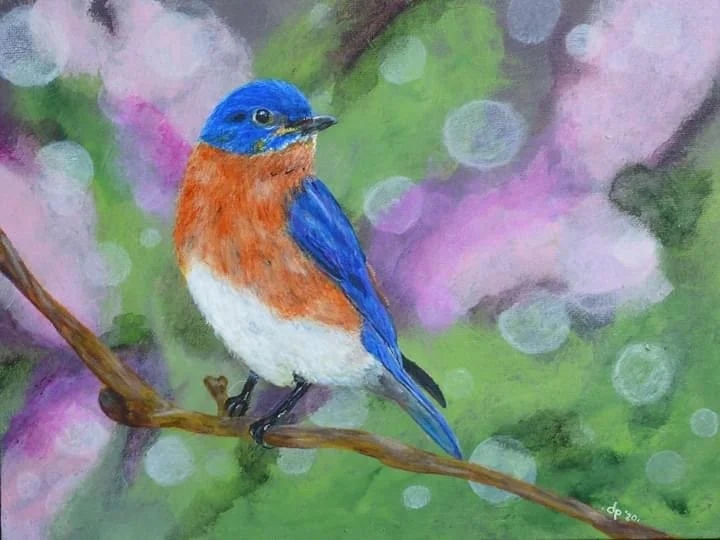 The Eastern Blue Bird is the favorite bird of my sister in law. This original 9” x 12” acrylic on canvas board was created just of her.